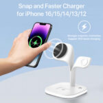 【15W Faster Speed for Magsafe Charger Stand】: The device aligns with magsafe charger magnet for faster wireless charging safely. It delivers a fast charge to your iphone 15,14, 13, 12 pro/pro max/mini/plus, charging from 0 to 80% in about 1.5 hours. iWatch wireless charger for apple watch 1/2/3/4/5/6/7/8/9/Ultra/SE and charging station also charge simultaneously for AirPods 2/3 Pro/Pro 2 and other phone with wireless charging capability.