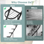 ● Upgraded Metal Structure: Made entirely of metal with a sprayed surface, the plant stand is ultra stable and built to last. And the 5-tier shelves feature a grid layout to avoid accumulating water, thus prolong lifespan. To ensure stability on uneven surfaces, the plant stand comes with 8 adjustable foot pads.