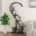 ● Create a Tidy Space: Equipped with 4 small shelves and a large bottom shelf, the tall plant holder provides ample space to hold your favorite plants, books and art crafts. Besides, there are 4 extra hanging hooks for you to display basket plants or decorations.