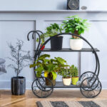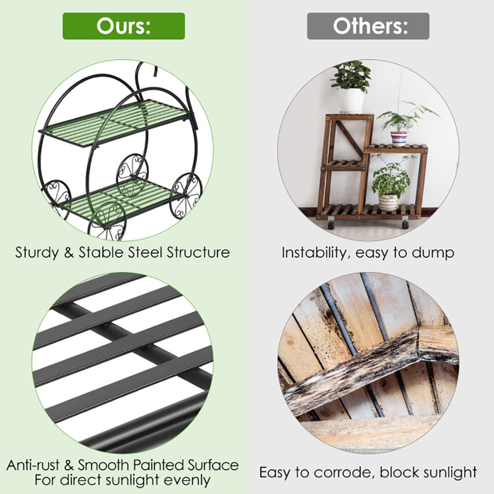● Decorative and Practical Function: Its shape looks like a Parisian trolley cart with round wheels. It can perfectly serve as a exquisite and classic decoration. There are two tiers in total and each tier is wide enough for you can put your plant pot or flowers on.