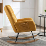 - [Gentle Rocking]Made of a safe metal frame, the nursery rocking chair provide stable support and has excellent curved legs, making it rock gently and smoothly. Such a sweet design is the perfect centerpiece for the nursery. Additionally, the right armrest has a large pocket on the side for magazines and TV controls